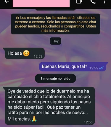 Hay empatía, hay estructura y hay una luz al final del túnel. Me encantará acompañarte a recuperar tus noches.
